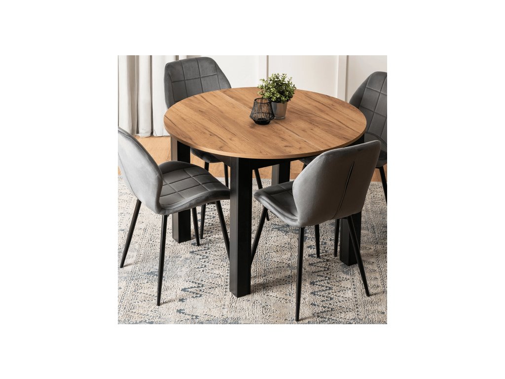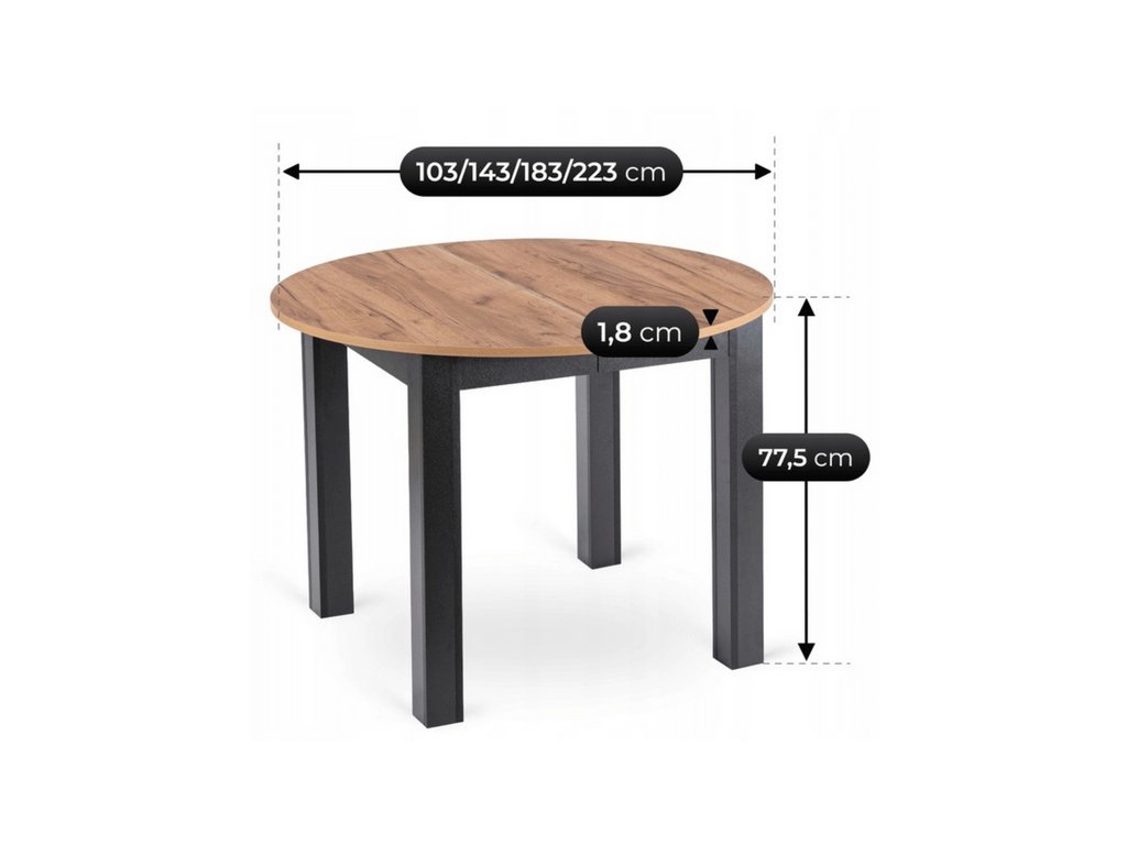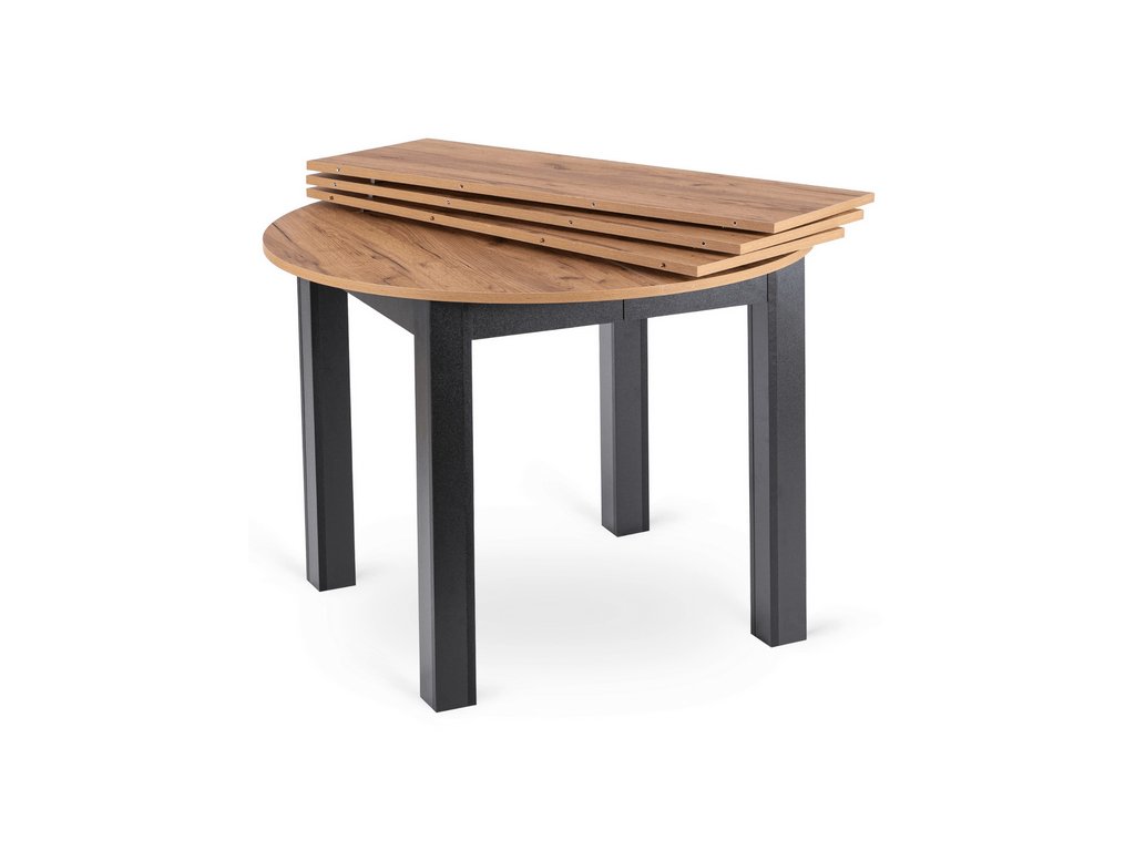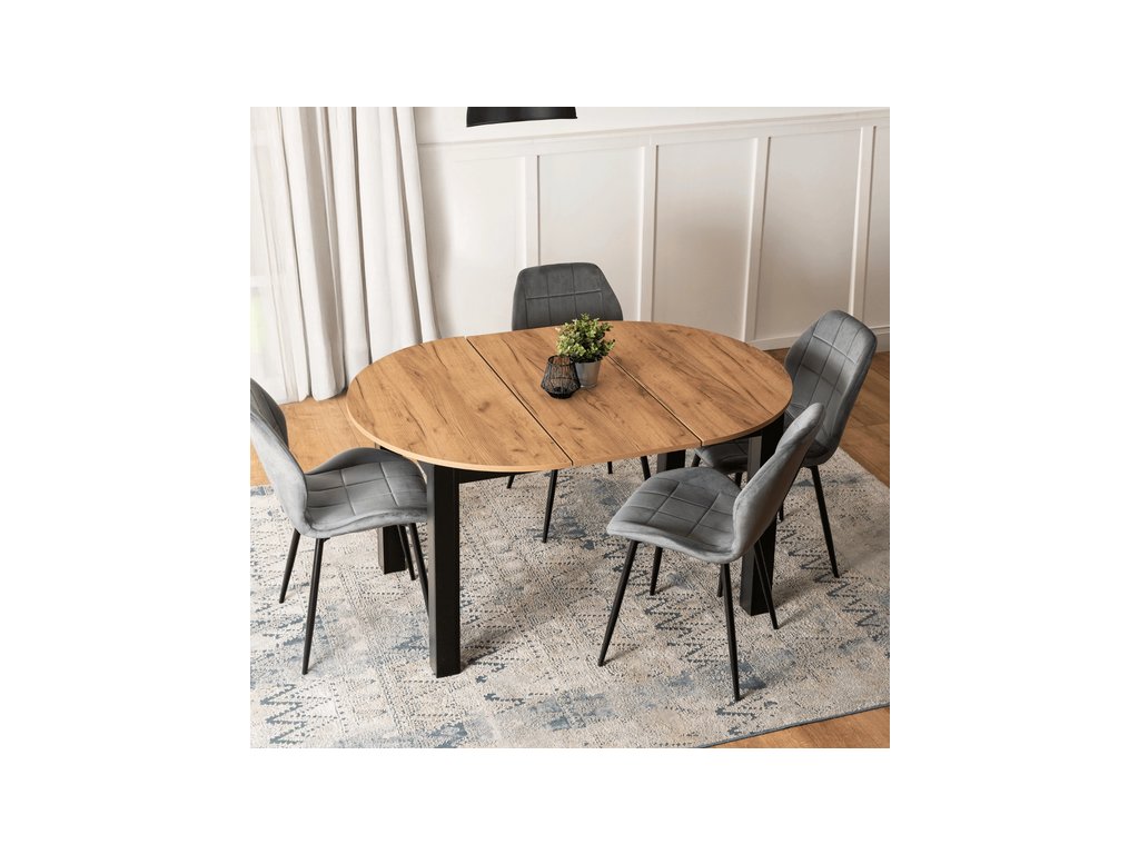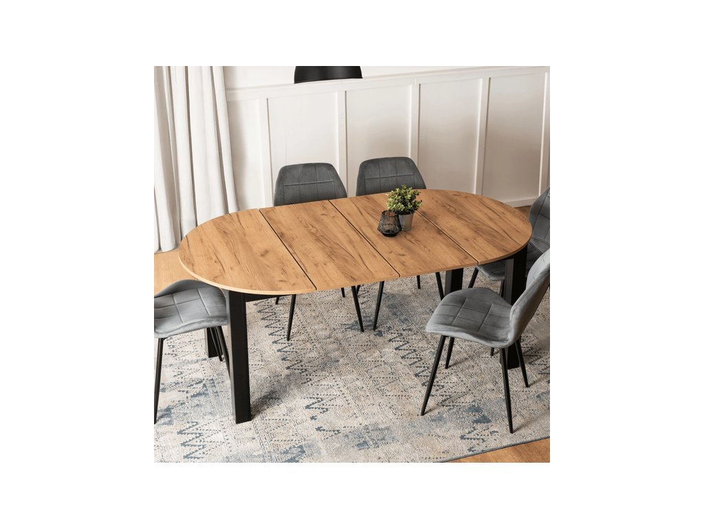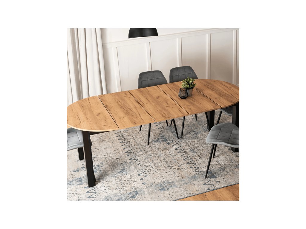 Rozkladací stôl RAMON 103–223 cm v modernom dekore Dub Craft s čiernym korpusom spája štýlový dizajn s maximálnou praktickosťou. Stôl je rozkladací, takže poskytuje dostatok priestoru pre rodinu a hostí, ideálny na každodenné stolovanie aj špeciálne príležitosti. Stabilná konštrukcia z kvalitných materiálov zaručuje odolnosť a jednoduchú údržbu, vďaka čomu sa stôl RAMON stane elegantným a funkčným doplnkom každej jedálne.