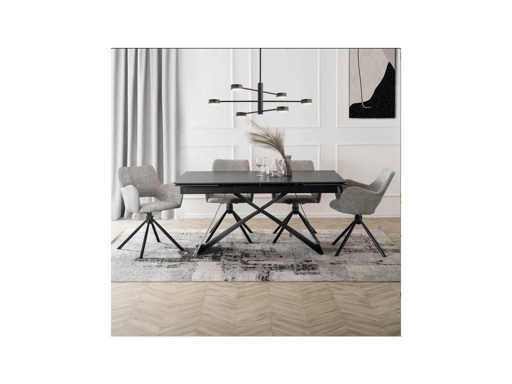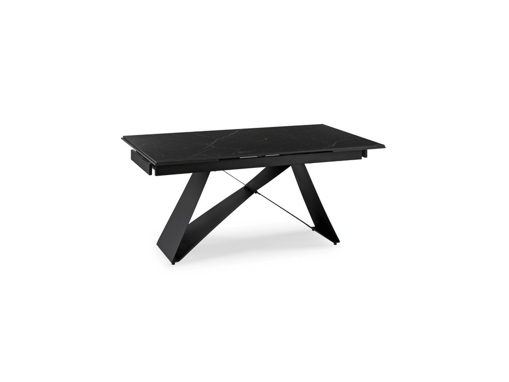 Rozkladací stôl ROCCO v modernom dekore čierneho mramoru s čiernou kovovou konštrukciou je ideálnym riešením pre tých, ktorí hľadajú spojenie luxusného vzhľadu a každodennej funkčnosti. Jeho minimalistický, no výrazný dizajn dokonale zapadne do moderných aj industriálnych interiérov.