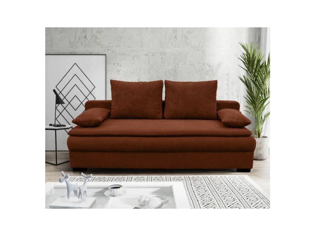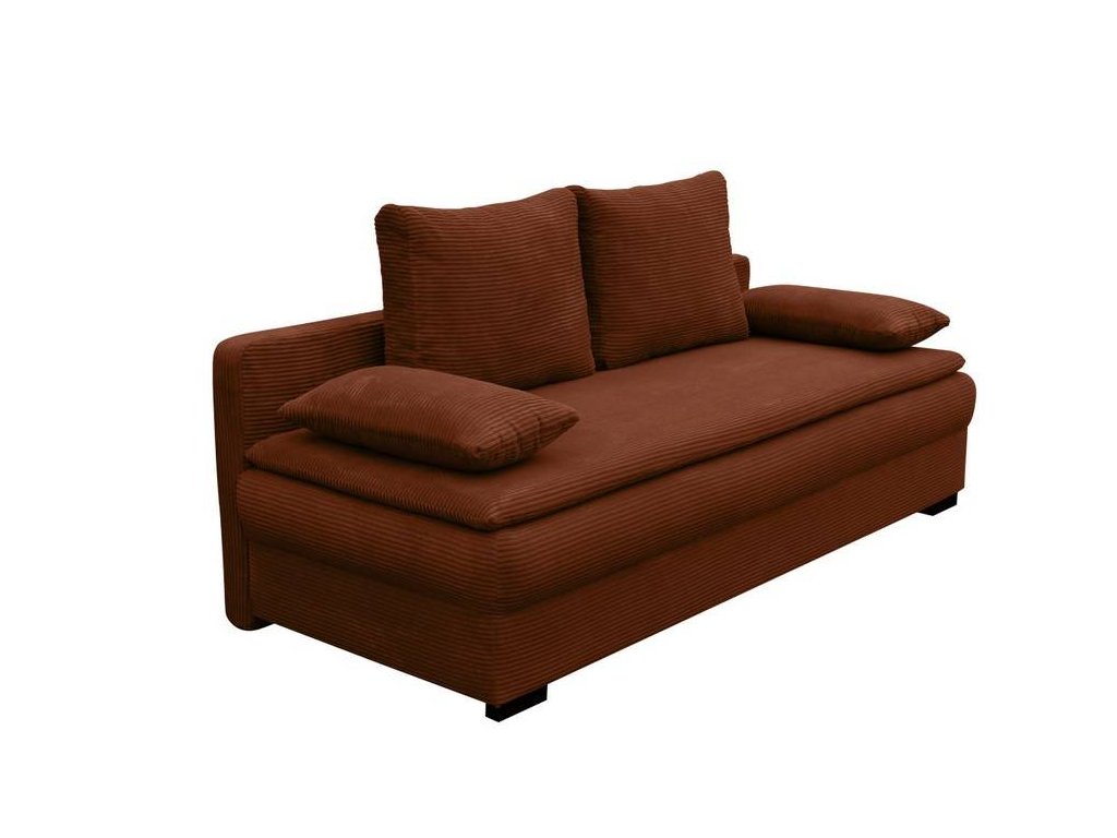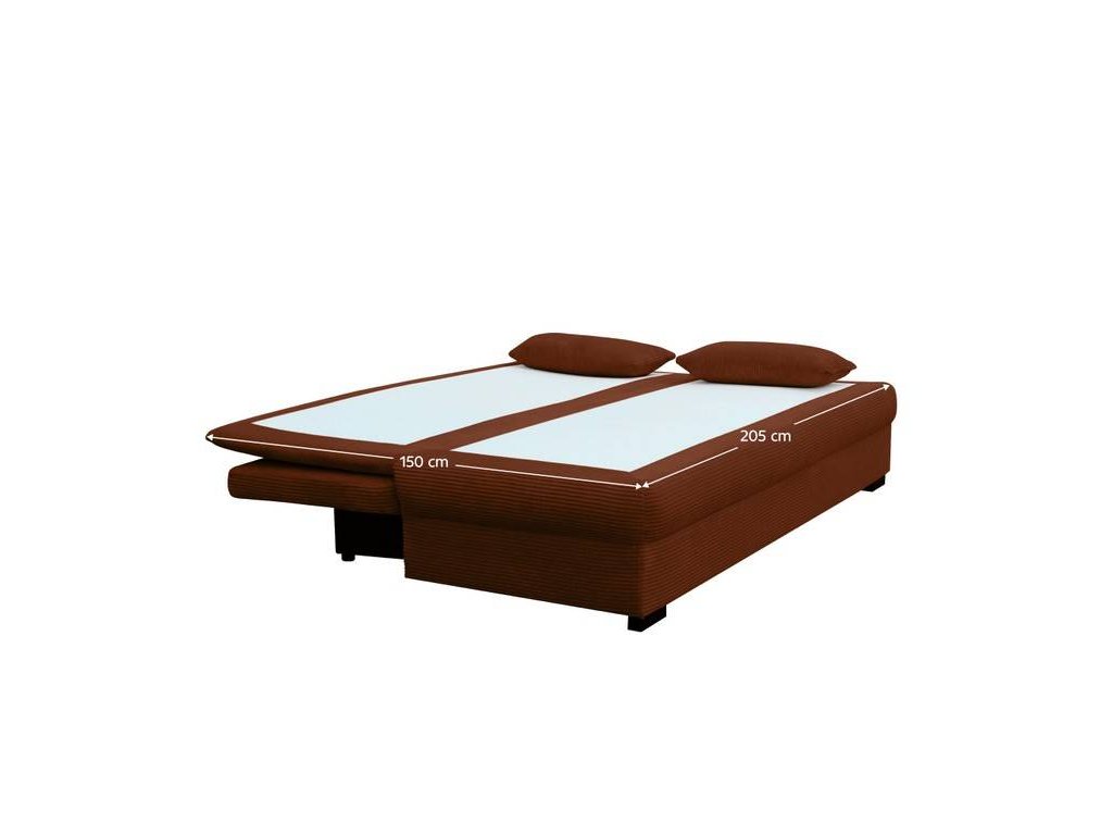 Pod sedacou časťou sa nachádza priestranný úložný priestor – ideálny pre posteľnú bielizeň, deky, vankúše, hračky či iné veci, ktoré chcete mať vždy po ruke. Jednoduchým povytiahnutím sedacej časti a sklopením opierky pohovku ľahko rozložíte na veľkú plochu 150 × 205 cm, vhodnú na príležitostné prespanie.