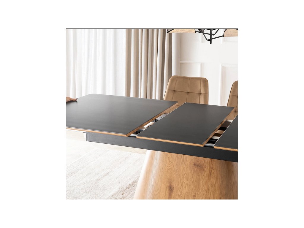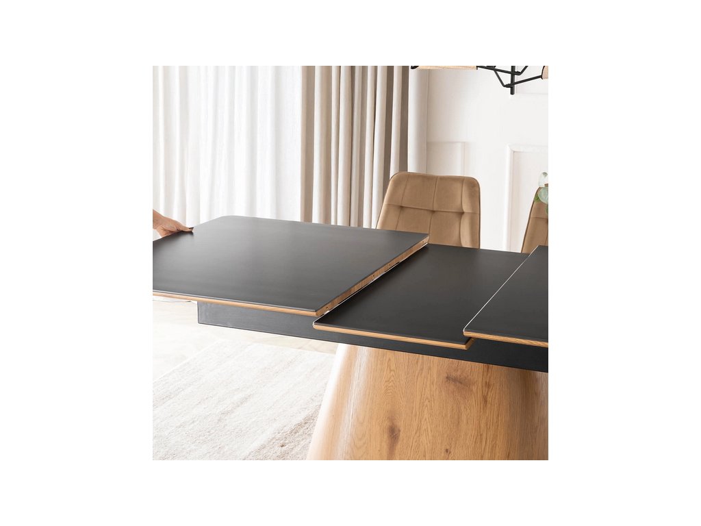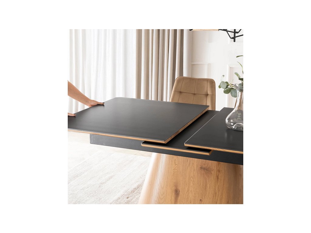 Jedálenský stôl LUCIANO v elegantnom dekore čierneho duba spája moderný dizajn s funkčnosťou. Rozkladací stôl s dĺžkou 160–200 cm ponúka dostatok miesta pre celú rodinu a štýlovo doplní každú jedáleň.