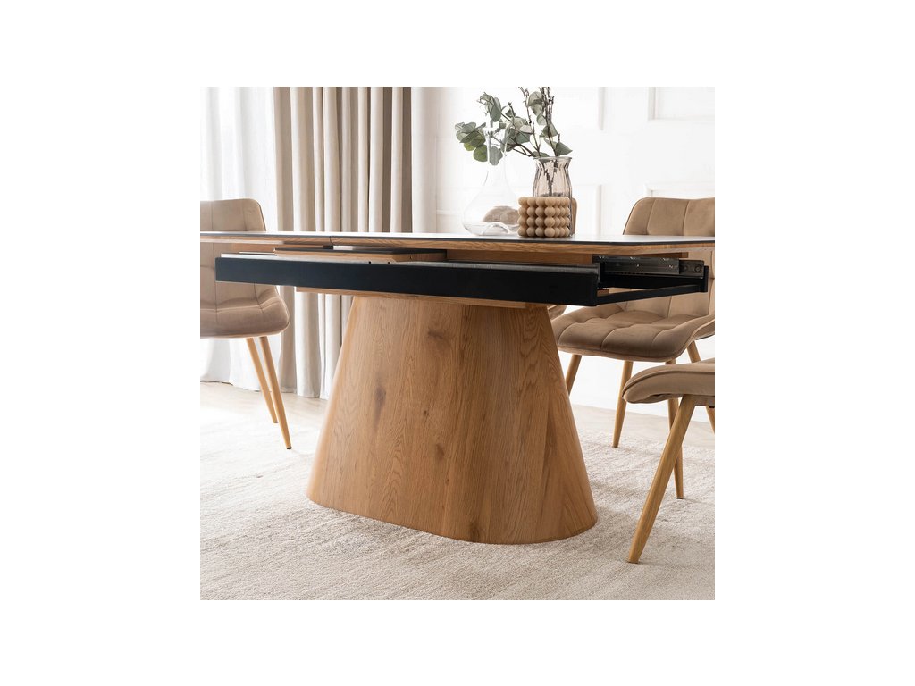 Jedálenský stôl LUCIANO je dokonalým spojením moderného dizajnu a praktického využitia. Vďaka kombinácii čierneho dubového dekoru pôsobí luxusne a zároveň teplo, čím sa stane dominantným prvkom vašej jedálne či kuchyne.