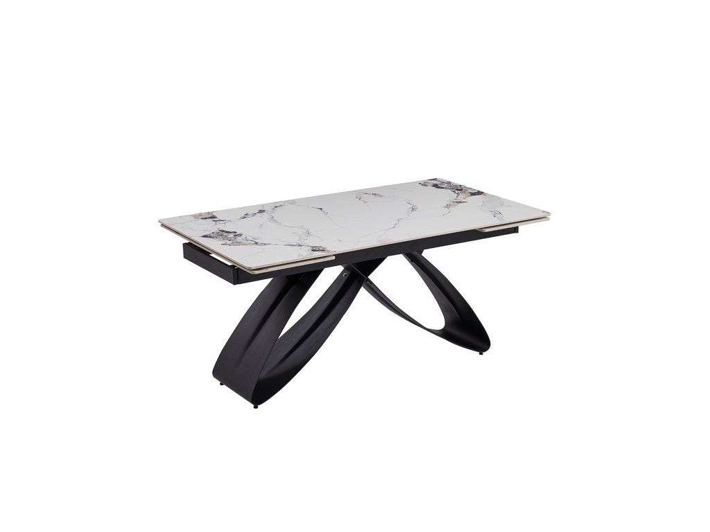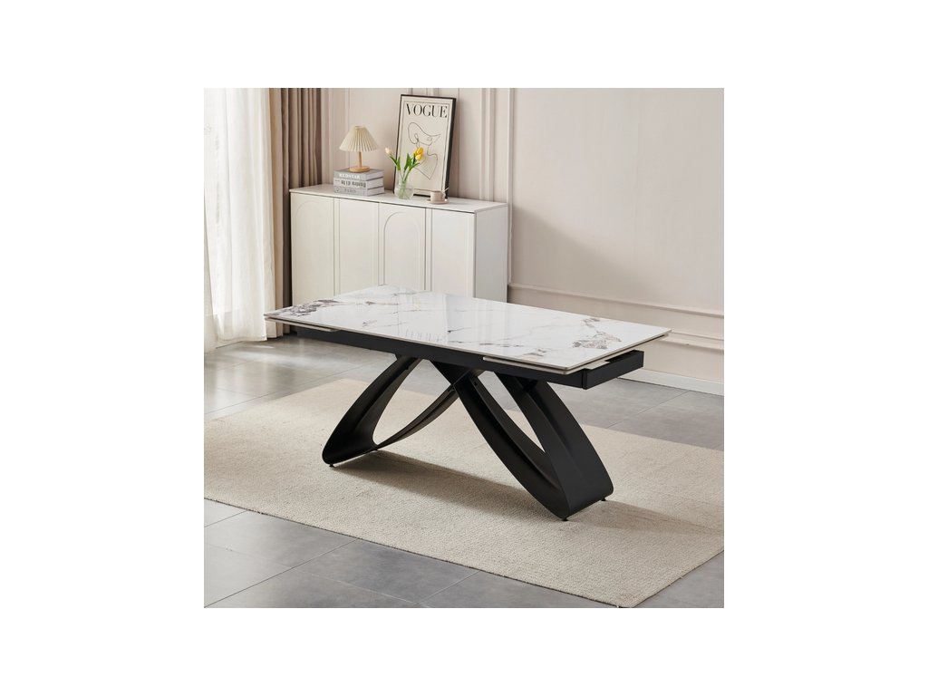 Rozkladací jedálenský stôl MATEO v kombinácii biely mramor a čierna konštrukcia prináša do interiéru luxusný a nadčasový vzhľad. Tento stôl spája eleganciu, odolnosť a praktickosť, čo z neho robí ideálny doplnok do moderných jedální a kuchýň.