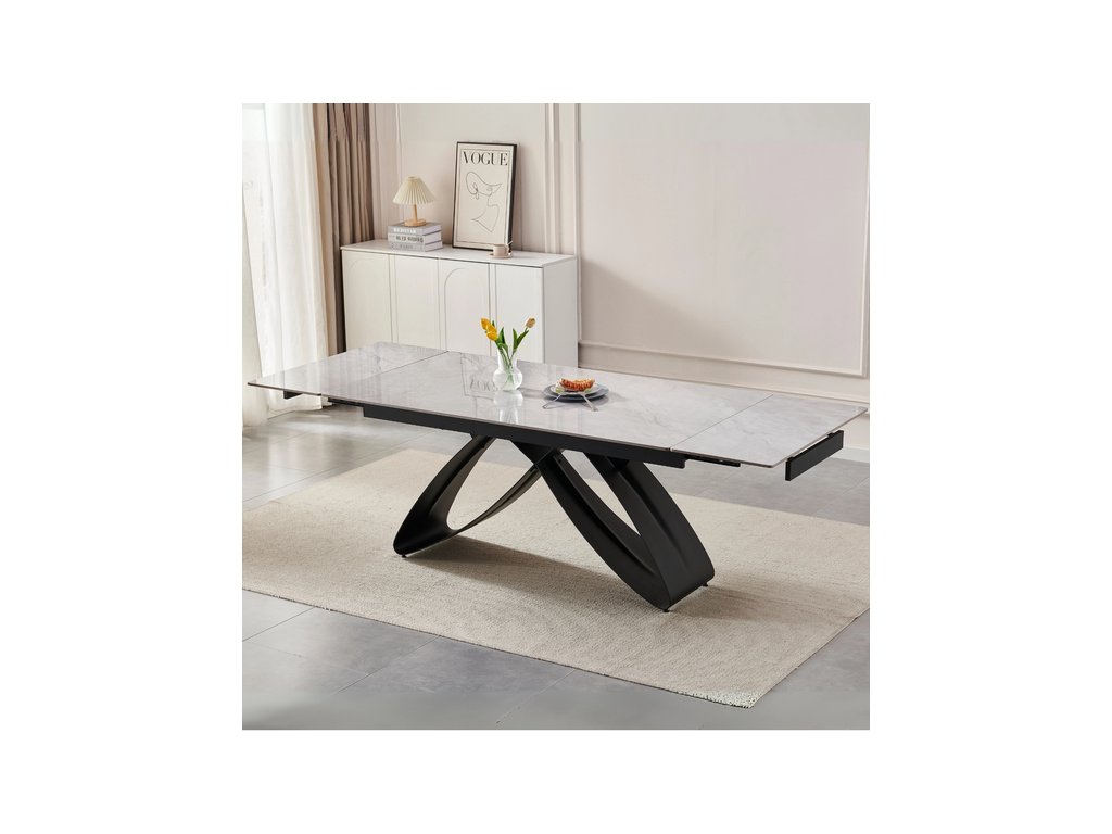 Rozkladací jedálenský stôl MATEO v kombinácii sivy mramor a čierna konštrukcia prináša do interiéru luxusný a nadčasový vzhľad. Tento stôl spája eleganciu, odolnosť a praktickosť, čo z neho robí ideálny doplnok do moderných jedální a kuchýň.