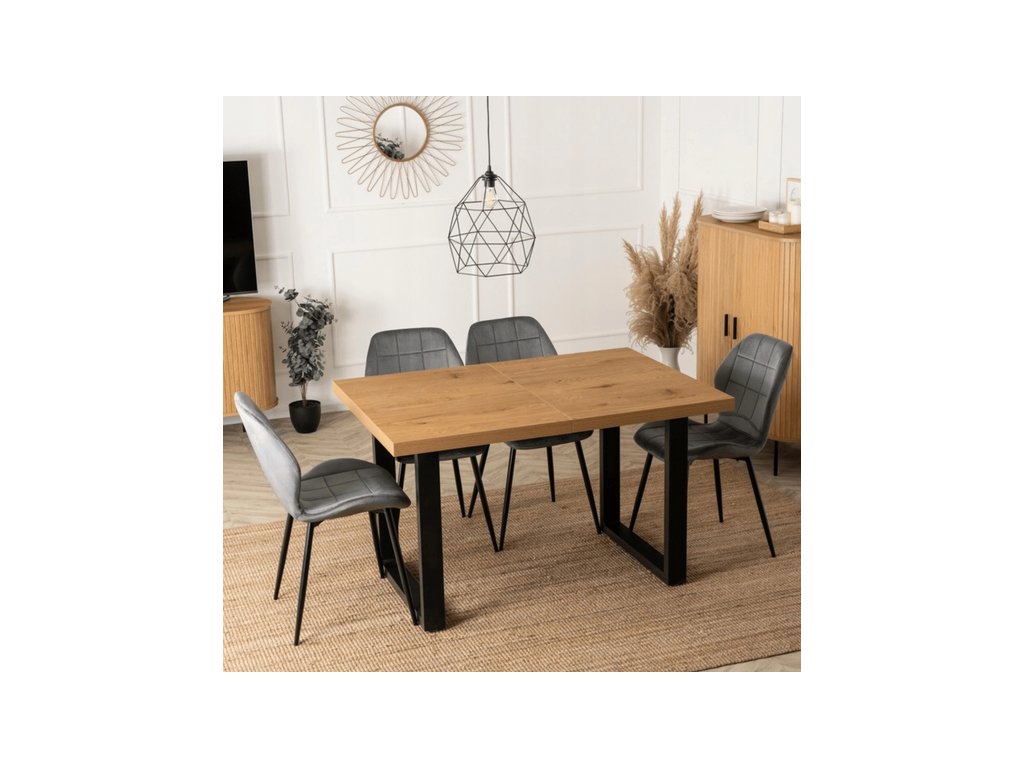 Rozkladací stôl SANDRO kombinuje nadčasový dizajn s praktickým využitím pre každodenné stolovanie aj špeciálne príležitosti. Elegantná kombinácia Dub Zlatý s čiernym korpusom dodáva stolu luxusný vzhľad a robí z neho dominantný prvok každej jedálne.
