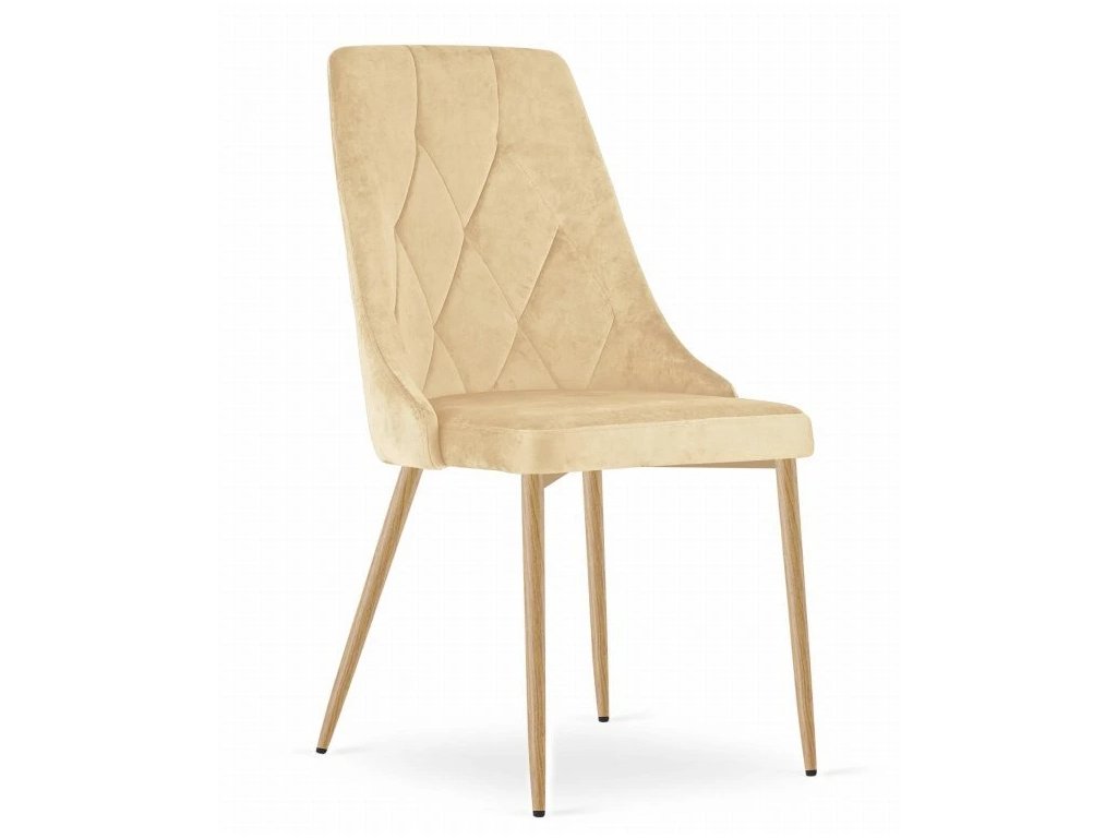 Stolička IMOLA - svetlý béžový zamat / nohy vo farbe dreva