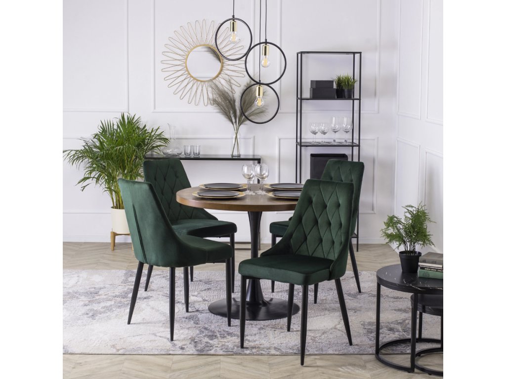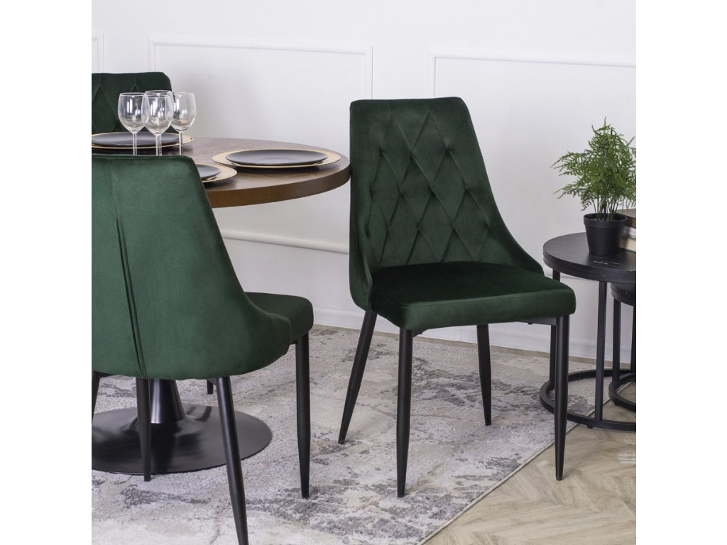 Hľadáte štýlovú jedálenskú stoličku, ktorá v sebe spája moderný dizajn, pohodlie a dlhú životnosť? Čalúnená stolička IMOLA v smaragdovo zelenej farbe je ideálnou voľbou pre každého, kto chce dodať svojmu interiéru nadčasový charakter. Vďaka svojmu zamatovému čalúneniu a elegantnému prešívaniu v tvare diamantu pôsobí luxusne, no zároveň si zachováva vysokú praktickosť.