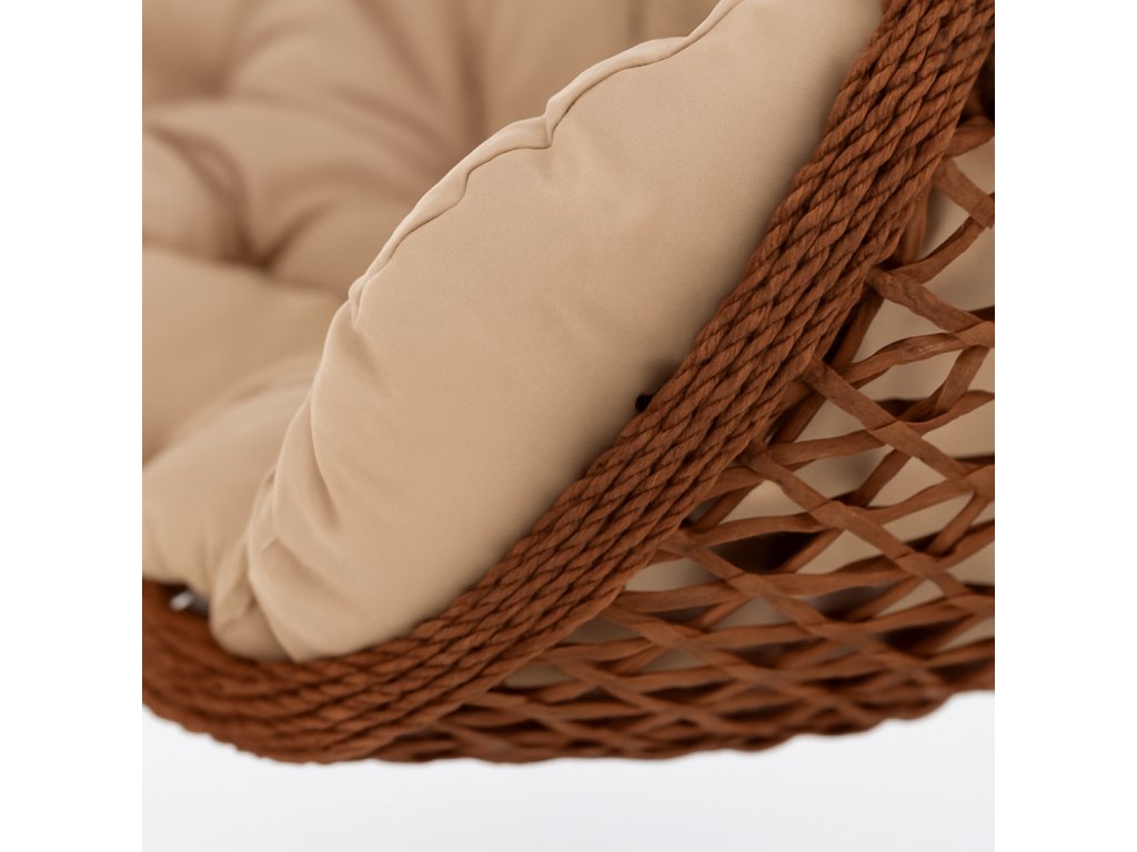 Závesné hojdacie dvojkreslo ARIANA – ratanové kreslo typu kokon s hnedou robustnou konštrukciou a pohodlným vankúšom. Ideálne na terasu, záhradu, balkón, zimnú záhradu aj interiér. Štýlový doplnok pre dokonalý relax a pohodlie.