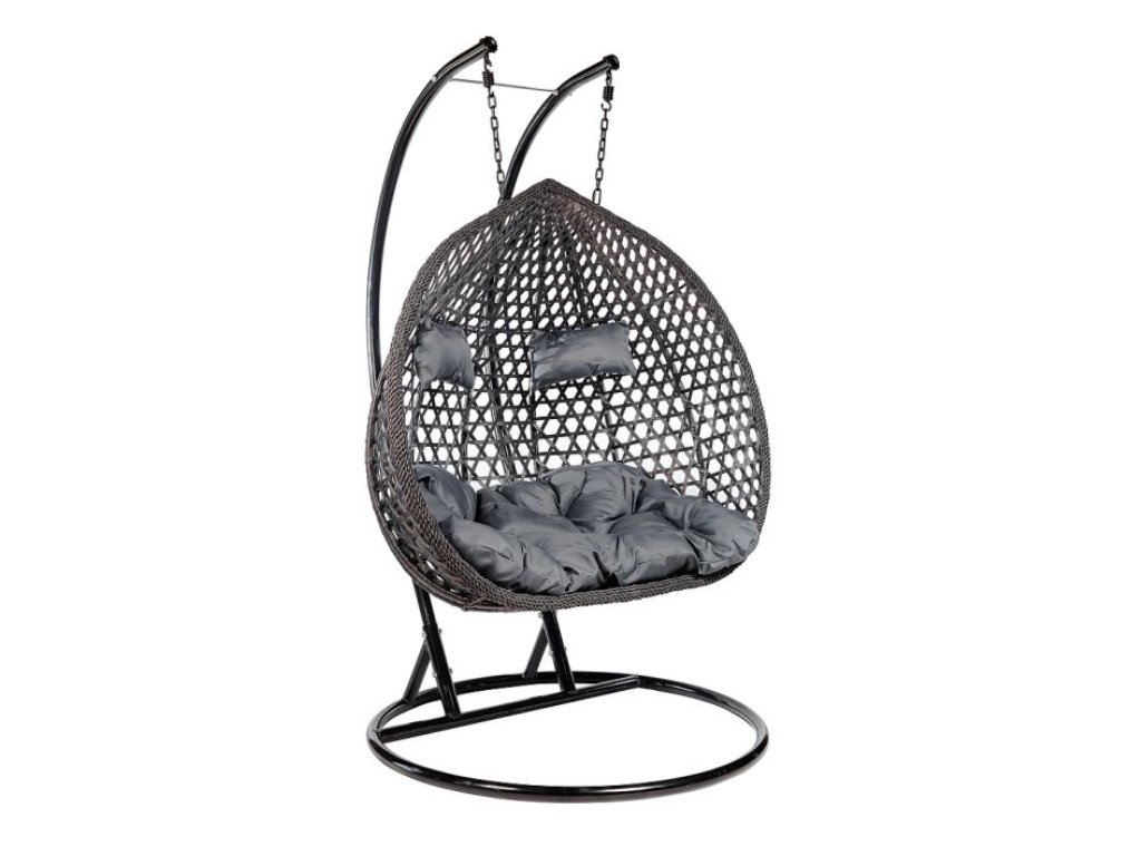 Dvojkreslo pozostáva z pevného oceľového stojana a kvalitného sedadla z umelého ratanu, ktorý je odolný voči poveternostným vplyvom a zároveň pôsobí prirodzene. Jemný hojdací pohyb prispieva k maximálnemu uvoľneniu. Mäkký a husto vyplnený vankúš poskytuje výnimočné pohodlie pri každom posedení.