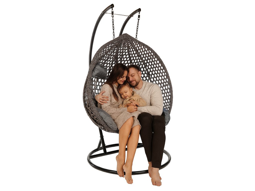 Dvojkreslo je vyrobené z odolnej oceľovej konštrukcie v kombinácii s kvalitným ratanom, čo zaručuje pevnosť a dlhú životnosť. Zvýšená nosnosť až 250 kg umožňuje pohodlné hojdanie pre deti aj dospelých.