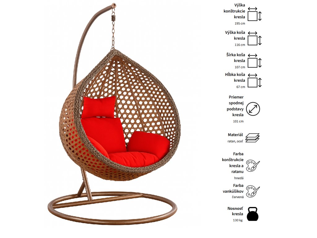 Kreslo je vyrobené z odolnej oceľovej konštrukcie v kombinácii s kvalitným ratanom, čo zaručuje pevnosť a dlhú životnosť. Nosnosť až 130 kg umožňuje pohodlné hojdanie pre deti aj dospelých.