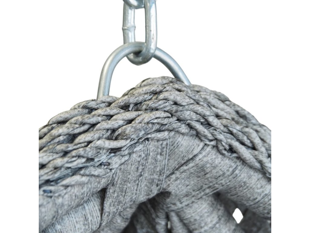 Kreslo je vyrobené z odolnej oceľovej konštrukcie v kombinácii s kvalitným ratanom, čo zaručuje pevnosť a dlhú životnosť. Nosnosť až 130 kg umožňuje pohodlné hojdanie pre deti aj dospelých.