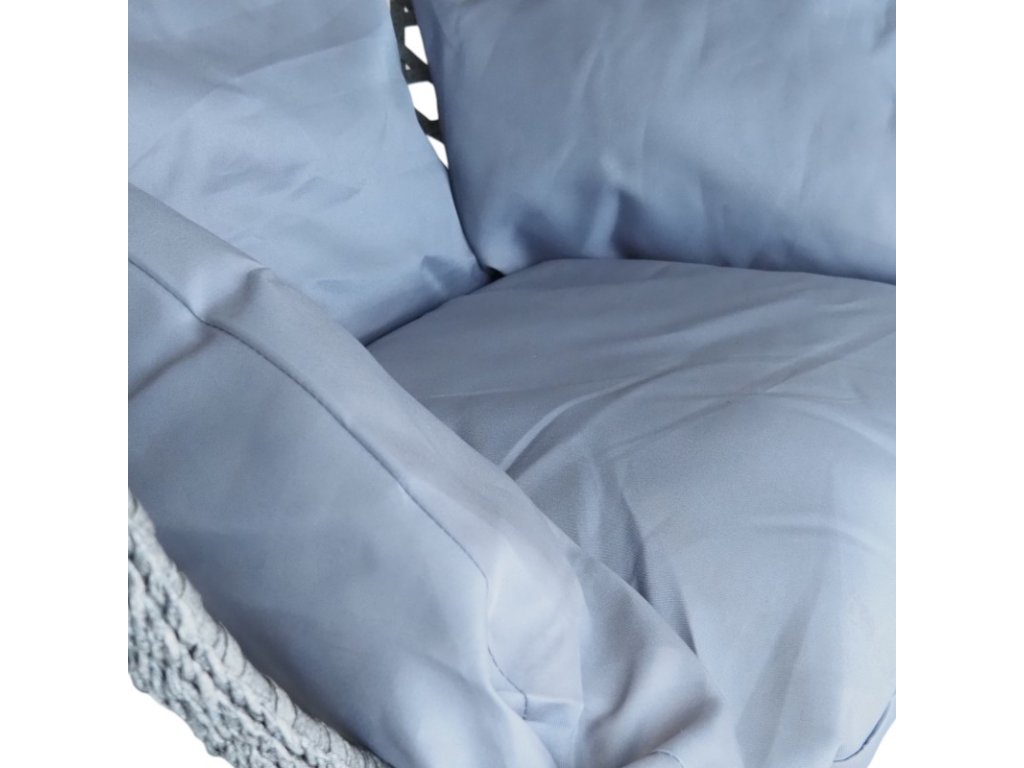 Kreslo pozostáva z pevného oceľového stojana a kvalitného sedadla z umelého ratanu, ktorý je odolný voči poveternostným vplyvom a zároveň pôsobí prirodzene. Jemný hojdací pohyb prispieva k maximálnemu uvoľneniu. Mäkký a husto vyplnený vankúš poskytuje výnimočné pohodlie pri každom posedení.