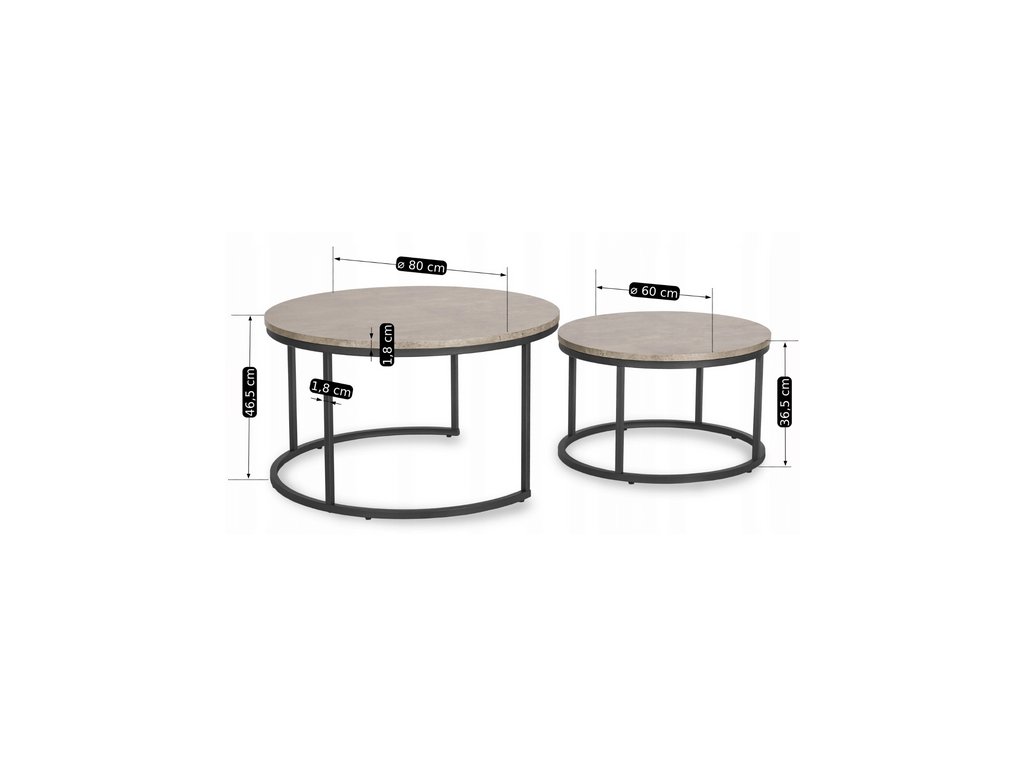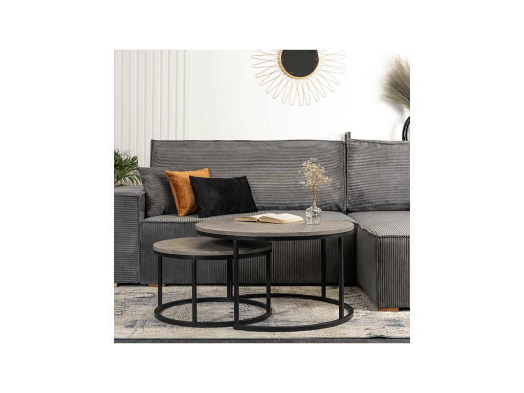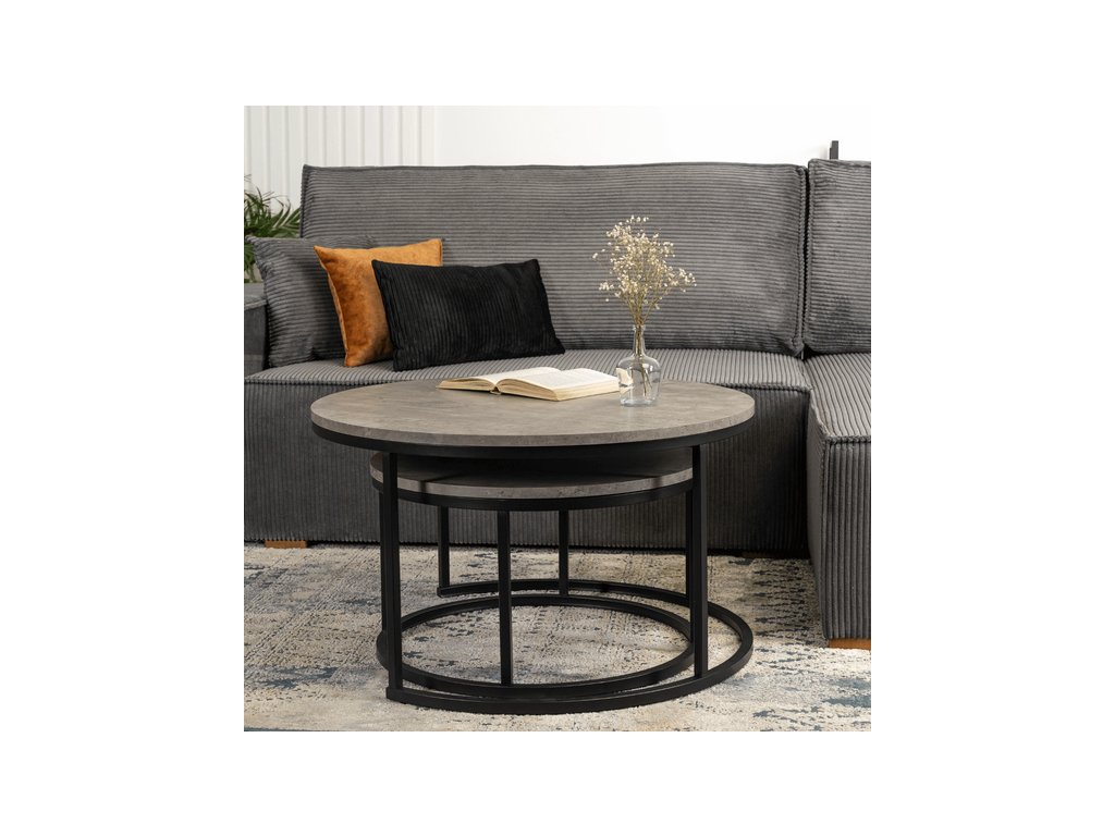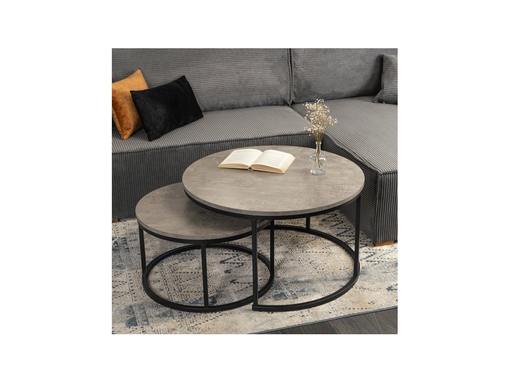 Štýlová súprava 2 konferenčných stolíkov BARCO je ideálnym riešením pre moderný interiér. Vďaka kombinácii odolnej konštrukcie z ocele s čiernym práškovým nástrekom a kvalitnej dosky z MDF v dekore sivý betón ponúka perfektné spojenie dizajnu a funkčnosti.