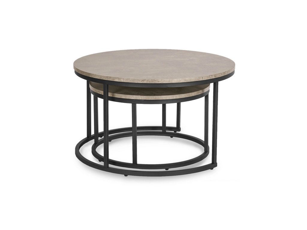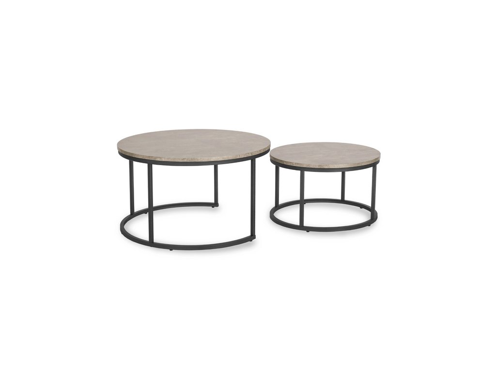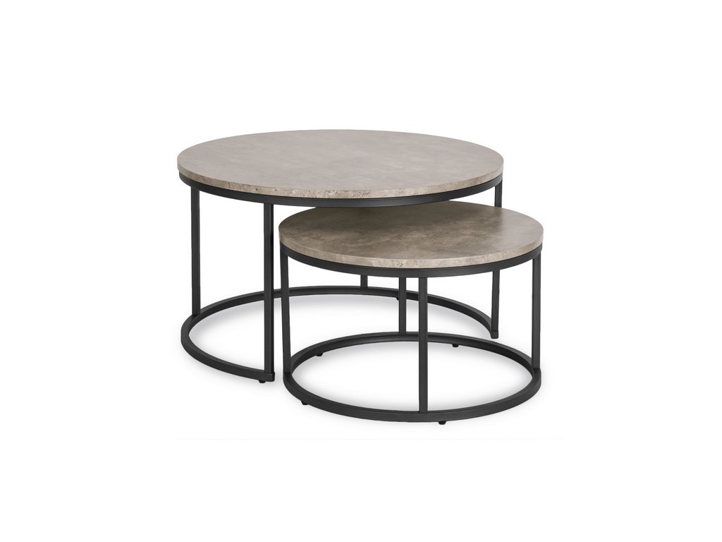 Sada 2 konferenčných stolíkov BARCO v modernom industriálnom štýle je dokonalým riešením pre vašu obývačku, balkón alebo terasu. Stolíky s doskou v dekore sivý betón a pevnou konštrukciou z čiernej práškovo lakovanej ocele pôsobia elegantne, sú odolné a ľahko sa udržiavajú.