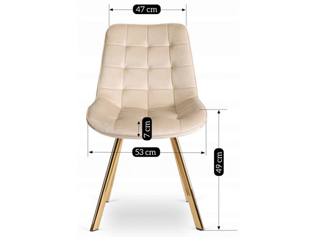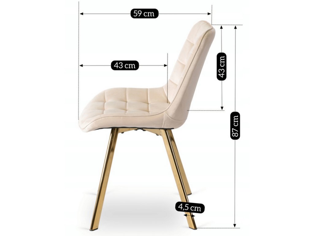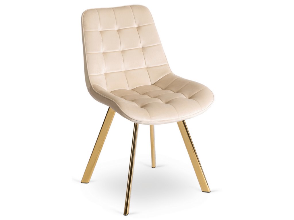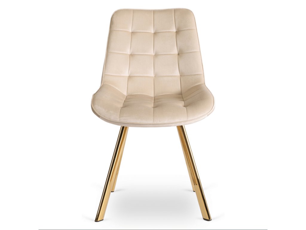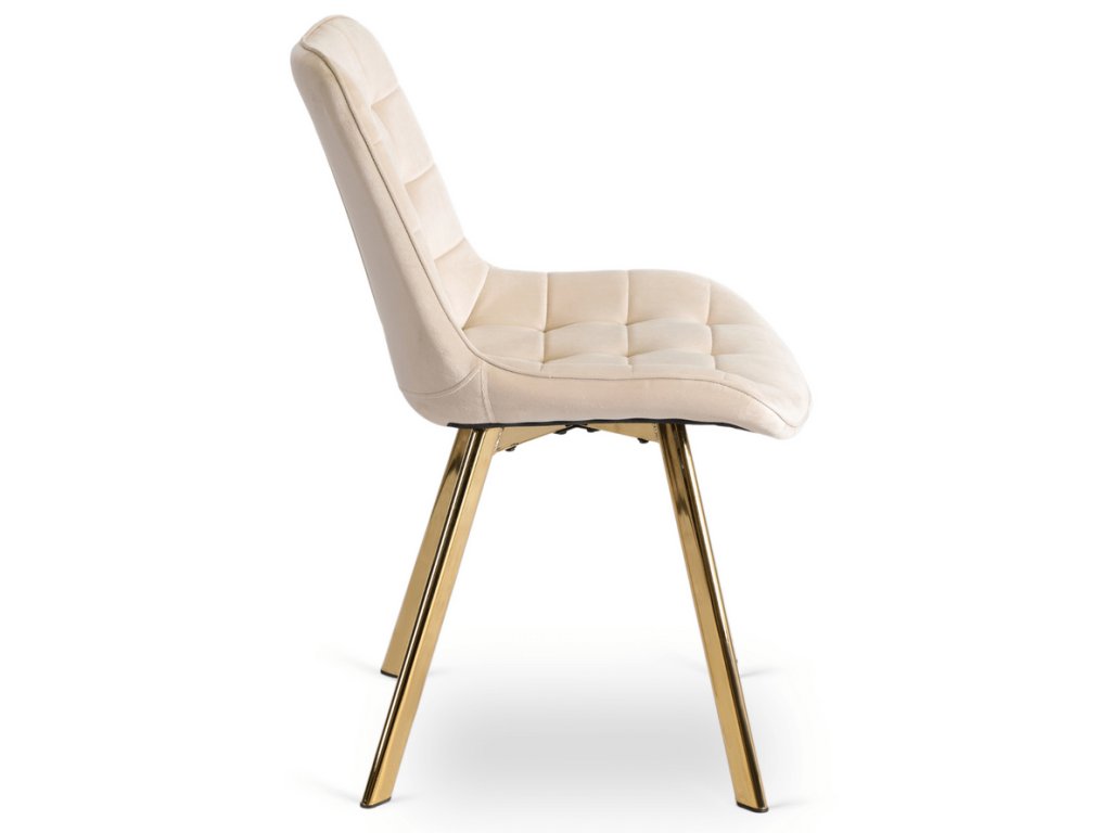 Súčasťou zostavy sú 4 čalúnené stoličky DORIS v krémovej farbe. Mäkké zamatové čalúnenie, elegantné prešívanie a zlaté nohy vytvárajú harmonický a luxusný celok. Stoličky sú nielen krásne, ale aj pohodlné – ideálne na dlhé večere či rodinné posedenia.