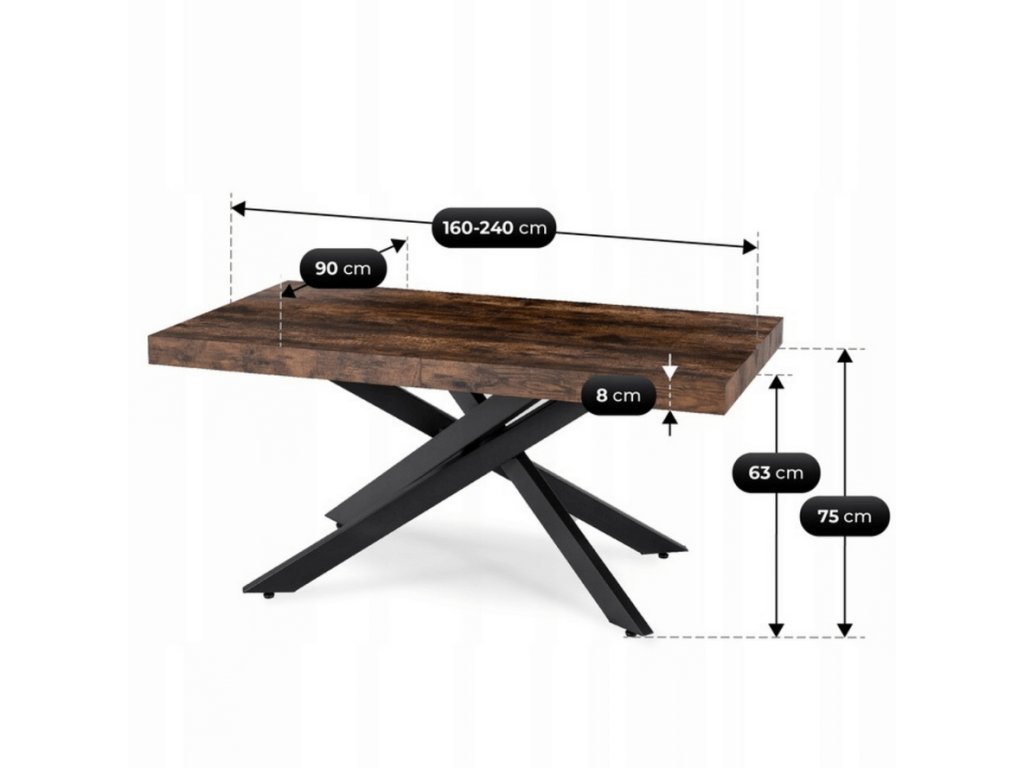 Rozkladací stôl: dĺžka stola od 160 - 240cm, šírka stola 90cm, hrúbka stola 8cm