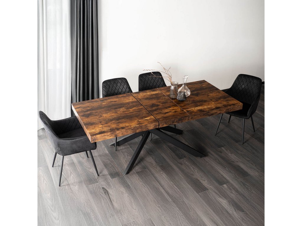 Jedálenská zostava stôl rozkladací AGORDO 160-240 cm Rustikálny Dub/Čierny a 4 čalúnené stoličky ANDRE čierne